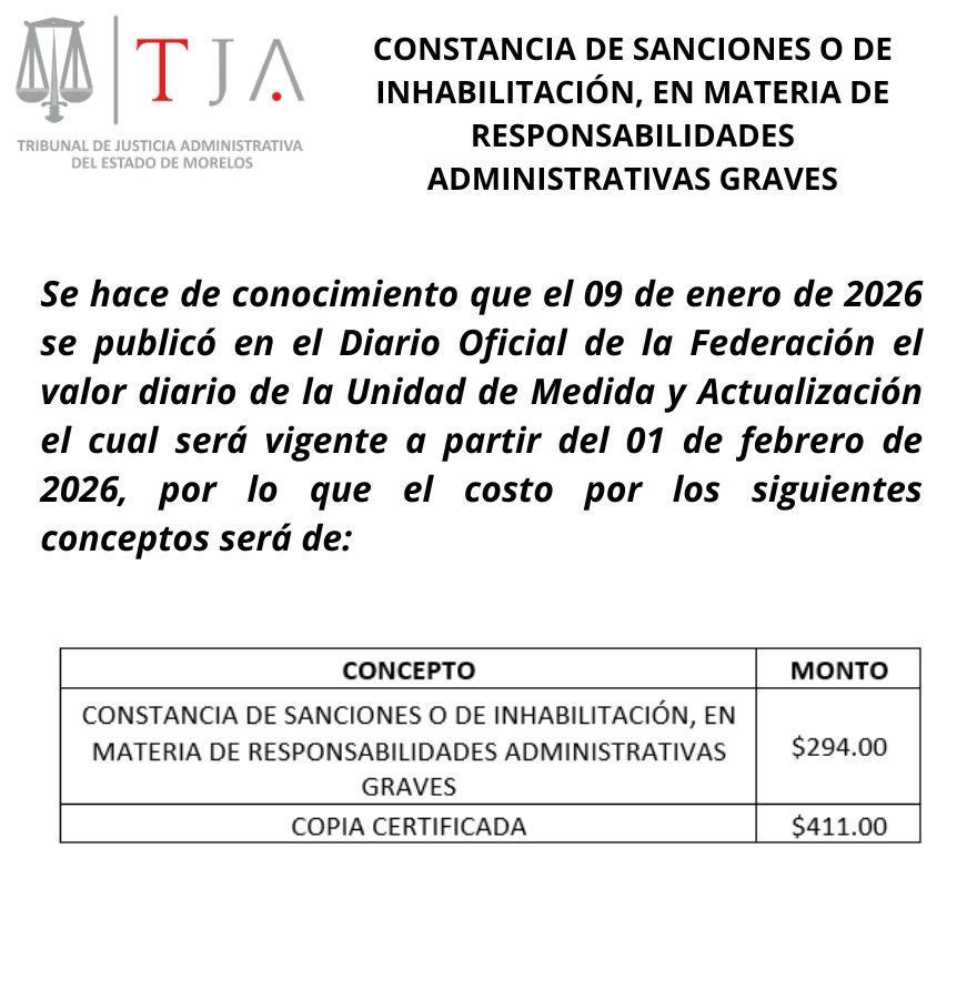 La información contenida en esta página sólo es de carácter informativo. Las notificaciones se realizan de conformidad con lo previsto por los artículos 24 al 33 de la Ley de Justicia Administrativa del Estado de Morelos: asimismo los términos comenzarán a correr de conformidad con lo establecido por los artículos 35 y 36 del citado ordenamiento.
